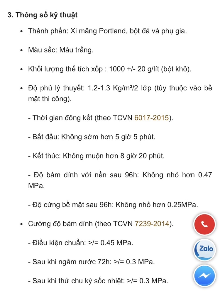 - Thành phần:Xi măng Portland, bột đá và phụ gia