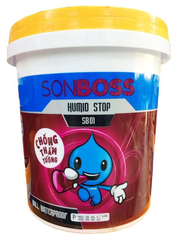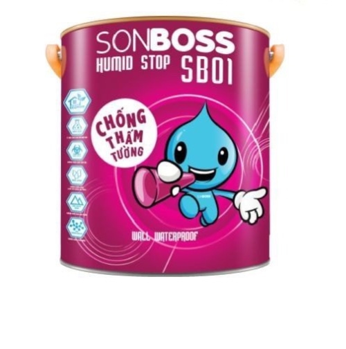 SONBOSS HUMID STOP WALL WATERPROOF SB01– SƠN CHỐNG THẤM TƯỜNG SB01 là sản phẩm với công thức tiên tiến có chức năng kép, kết hợp công nghệ chống thấm trực tiếp lên tường, bê tông cùng nhiều màu sắc tạo nên vẻ đẹp hoàn mỹ. Đặc biệt, màng sơn có thể co giãn và che lấp các vết nứt vừa và nhỏ. Sản phẩm không cần pha loãng, chỉ cần quậy đều trước khi sử dụng, giúp chống thấm và tính năng kháng kiềm cao, có thể thi công trực tiếp lên bề mặt tường mới mà không cần dùng bột trét và sơn lót trước. Ngoài ra, sơn cũng có các tính năng khác như chống bám bụi, chống sự sinh trưởng của rong rêu và nấm mốc, thích hợp cho những vùng có khí hậu ẩm và mưa nhiều.