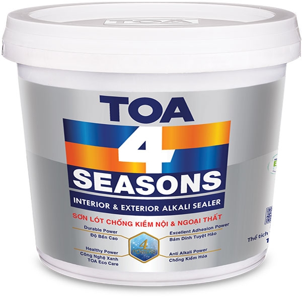 TOA 4 Seasons Sealer là sơn lót chống kiềm dùng ngoài nhà, thích hợp cho bề mặt cũ và mới như bê tông, tường xi măng, gạch ngói, v.v…
