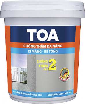 TOA Chống Thấm Đa Năng là chất chống thấm đặc biệt có cấu tạo từ nhựa Styrene Acrylic dùng để pha với xi măng, sử dụng công nghệ chống thấm của CHLB Đức có khả năng Chống Thấm thông minh: ngăn không cho nước thấm từ bên ngoài vào, đồng thời hơi ẩm bên trong tường vẫn có thể thoát ra ngoài theo những kẽ hở giữa các phần tử nhằm chống thấm hiệu quả và tăng độ bền tối đa cho bề mặt xi măng, cấu trúc bê tông.